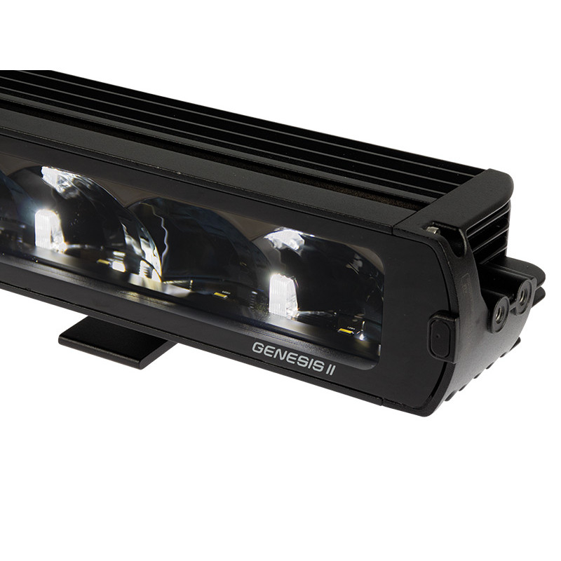• Information: Genesis II 1300 Spot lights are a new development of the very popular X-Vision Genesis series. The newcomers to this product family offer new light patterns and fresh design options. The Genesis II series lights are frameless straight LED auxiliary light bars with bright Gemstone marker lights placed between the running light LED modules. New extra-long beam (spot) bar options are new to support the familiar wide and hard hybrid beam models. 4700K, 12V: 19.5A (full power), 1.5A (R112), 14800lm (full power), 2400lm (R112), 1 lux at 1200m (full power), 430m (R112), E-mark R10, R112