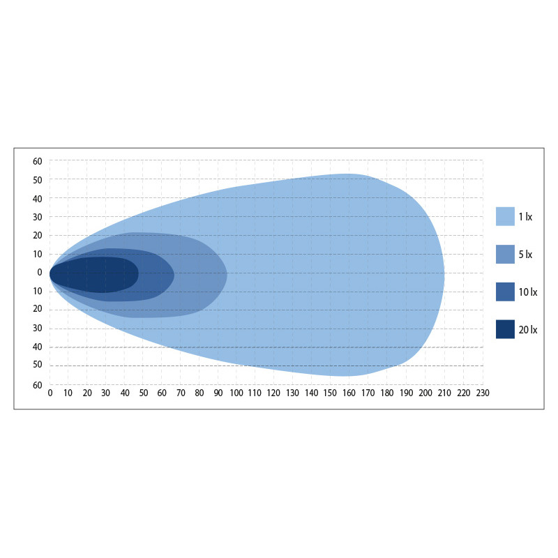 • Informācija: 80 x 5W Osram, 2 rindu panelis, izliekts, plūdu stars, 48000lm (neapstrādāts) - 20642lm (testēts), 866lx @10m, 6000K,. strāvas patēriņš 18.41A pie 13.7V, grafīta alumīnija korpuss, datora objektīvs, kronšteins: alumīnijs un nerūsējošais tērauds, 1m gumijas kabelis ar DTP savienotājiem, IP67, R10