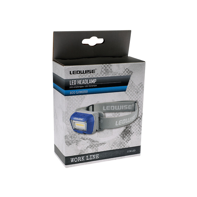 The Ledwise headlamp is a headlamp that provides hands-free and good visibility for work or leisure activities. Key benefits Package size: 1/10/40 Technical data Weight: 180g (net 180g) Lumens (measured): 300 lm IP rating: IPX5 Information: LEDWISE Workline headlamp, durable material, great option for working in the engine compartment of a vehicle, such as a soft headband with anti-slip, 3.7V 1500mAh battery, USB - C charging, cable 1m, convenient motion sensor function that can turn the light on and off with a wave of the hand, smooth wide light beam, half power - full power, no flicker mode. Warranty (months): 24